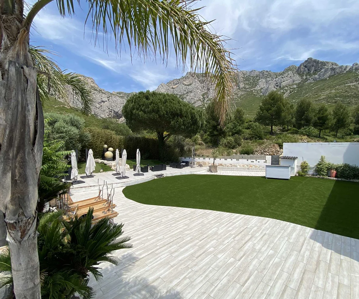 LES JARDINS DES MERLES Pose de gazon synthétique à Allauch, près de Marseille